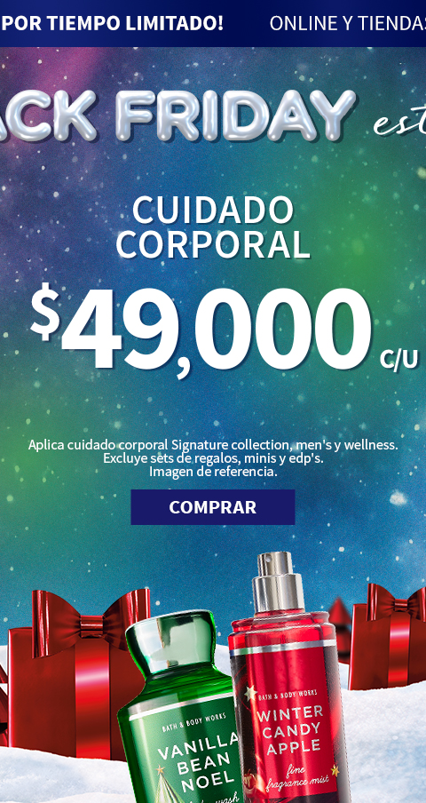 Bath & Body Works Colombia es el lugar perfecto para encontrar los mejores regalos. Desde frescas fragancias hasta cremas humectantes, un detalle lindo para esa persona especial. Busca tu fragancia de la temporada y mientras buscas, compra nuestra mejor colección de lociones, jabones para manos y velas.